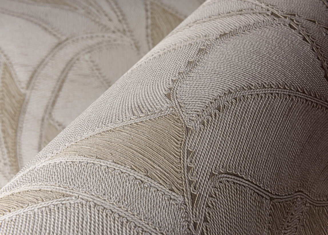 Auch die Materialität der Akzente bleibt bewusst hochwertig und zurückhaltend: Die Tischleuchte aus Alabaster mit Leinenschirm sorgt für ein sanftes, warmes Licht, während der Beistelltisch mit Entarsien aus Mangoholz handwerkliche Tiefe und einen Hauch Exotik einbringt. Dimmbaren Flos-Wandleuchten schaffen eine zweite Lichtebene und betonen die Tapetenstruktur atmosphärisch – von konzentriert am Tag bis weich und ruhig am Abend. Ein Kunstdruck rundet das Konzept ab und bringt eine subtile, persönliche Bildsprache in den Raum. So entsteht ein Ort, der Ruhe und Inspiration schenkt – reduziert, aber nicht kühl; modern, aber nie distanziert. Ein Arbeitszimmer, das die Sinne beruhigt: zeitlos, leise und voller natürlicher Leichtigkeit.